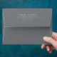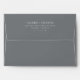 This wedding envelope features a sleek, minimalist design with a solid black background and crisp white text. The layout is clean and elegant, utilising a serif font that adds a touch of sophistication. Perfect for formal events, the composition focuses on clarity and refinement, making it ideal for invitations or announcements. Its simple yet stylish appearance conveys a professional and refined mood, suitable for any special occasion.