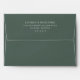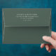 This wedding envelope features a sophisticated and minimalist design with a solid dark green background. The layout is centered, showcasing elegant serif typography in white for a classic touch. Customizable fields allow personalization with names, addresses, locations, and postal codes, making it perfect for formal invitations. The clean composition and monochromatic color palette convey an air of elegance and simplicity, ideal for creating a timeless and refined look for your special day.