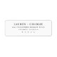 This return address label features a clean, minimalist design with a focus on elegant typography. The layout is simple and centered, using a classic monochrome color palette of black text on a white background for a timeless look. The serif font adds sophistication, making it ideal for formal invitations or announcements. Its understated style conveys clarity and refinement, perfect for those who appreciate modern simplicity in their stationery.