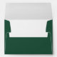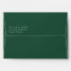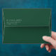 This wedding envelope features a minimalist design with a solid dark green background and crisp white text, creating an elegant and sophisticated look. The layout is simple yet refined, focusing on clean lines and precise spacing to emphasise clarity and formality. The typography includes bold, uppercase letters for the names and a lighter weight for the address, ensuring both are easily readable while maintaining a cohesive style. Perfect for couples seeking a modern and understated aesthetic, this envelope conveys a sense of timeless elegance ideal for formal announcements or invitations.