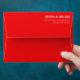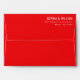 This envelope features a bold, minimalist design with a striking red background and clean white typography. The layout is simple yet elegant, emphasizing clarity and sophistication through ample negative space and a monochromatic color scheme. Perfect for formal invitations or announcements, the modern sans-serif font adds a touch of professionalism, making it ideal for special occasions like weddings or significant events.