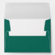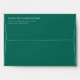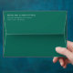 This wedding envelope features a minimalist design with a solid green background and crisp, centred typography. The classic serif font in white creates an elegant contrast against the deep green, emphasising clarity and sophistication. Perfect for couples seeking a modern yet timeless look, this envelope is ideal for formal invitations or announcements, conveying a mood of understated elegance and refinement.