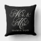 Elegant Black Mr and Mrs Script Custom Monogram Cushion