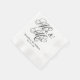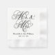 Wedding napkins feature "Mr. & Mrs." in a black calligraphy script font with custom monogram design that can be personalised with the bride and groom's married name and wedding date. Black and white colour scheme.