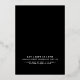 The back has a solid black background with the date, address, and RSVP details in clean white fonts for a sleek, balanced contrast.