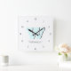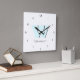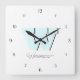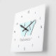 Elegant Black Numbers and Pastel Cyan Monogram Square Wall Clock