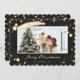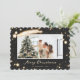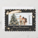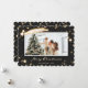 Elegant black photo Merry Christmas card featuring a photo frame adorned with a glowing stars and falling stars against a black background. Easily personalise this magical photo holiday card with your photo, family name and text. The background can be customised to any colour using the customisation tool.