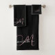 Elegant Black Pink Monogram Script Name Bath Towel Set