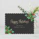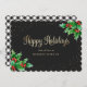 Elegant Black Plaid Watercolor Holly Business Holiday Card
