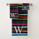 elegant black purple and yellow stripes monogram bath towel set ,modern colourful stripes monogram bath towel set,
