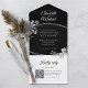 Announce your special day with style using this modern and elegant black and white wedding invitation. This all-in-one invitation RSVP combines convenience and sophistication, featuring both the invitation and response card in one design. The card showcases exquisite black and white watercolor flowers, enhanced by a combination of classic typography and swirling calligraphy, all set against a captivating black background. We've made RSVPing a breeze by including a QR code for your guests to conveniently respond online, saving time and effort. The addition of a monogram provides a charming touch to the overall design. With full customisation options available for personal details, colours, and fonts, you can create an invitation that perfectly reflects your preferences. It's the perfect choice for couples seeking a simple yet formal wedding invitation that leaves a lasting impression.