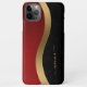 Elegant deep red, faux metallic golden yellow wavy stripe and black with a very faint damask pattern. Personalise with your name or message in golden yellow font.