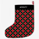 Elegant black and red lines diamond pattern with white lines stocking. Name is ready to be personalised.
