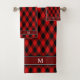 Elegant Black Red Diamond Pattern & Monogram Bath Towel Set