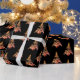 Elegant Black Red Orange Gift Wrapping Paper with Christmas Tree Pattern