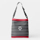 Modern elegant black, red and silver colour striped Crossbody Bag. M letter can be personalised.