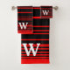 Elegant black &red stripes Pattern monogram Bath Towel Set