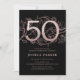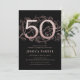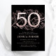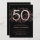 Elegant black rose gold 50th birthday party invitation. Customisable modern feminine design featuring roses botanical accents and faux glitter rose gold. Simple floral invite card perfect for a stylish female bday celebration. Personalise with your own details. Printed Zazzle invitations or instant download digital printable template.