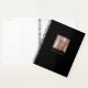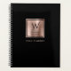 Personalise this elegant planner with your monogram initial in black decorative font and your name in black copperplate lettering on a rose gold faux brushed foil square, along with the year or other text of your choice in rose gold on the solid black background.
