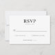 This RSVP card features a clean, minimalist design with ample white space and a simple black text layout. The bold uppercase serif font for "RSVP" is complemented by smaller sans-serif fonts for the date and response options, creating an elegant yet straightforward look. Customisable fields allow guests to write their names and indicate whether they accept or decline the invitation, along with the number of attendees. The modern style emphasises clarity and simplicity, making it perfect for formal events where a chic and uncluttered aesthetic is desired.