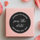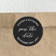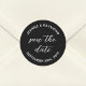 Elegant Black Save the date Wedding Announcement Classic Round Sticker
