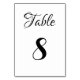 Elegant black script custom text Wedding Table Number