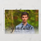 The word "graduate" in an elegant black script along with graduate's name and class year (or delete that line) is printed on the front of these graduation party invitations or graduation ceremony invitations. Put your photo on the front - we've added a white gradient overlay at the bottom so "graduate" is readable over your photo. The word Celebrate and your personal party information on the back (border can be deleted.) More designs in our store.