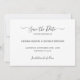 One photo wedding save the date card template with elegant invitation typography in black on the backside. Front of card features elegant white calligraphy spelling out "Save the Date" over a photo template of a happy couple. Backside with easy-to-customise save the date wording in black. © y.BEE WEDDINGS