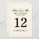 NOTE: Each table number card must be customised and individually added to the shopping cart. Elegant card includes a flourished Mr. and Mrs. monogram with black calligraphy and scroll design accents. Two sided design. To change the background colour (soft white ivory), go to Customise / Edit / Background.