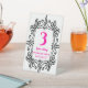 I love to play Bunco with my friends and enjoy designing these table cards for your own Bunco group. Place a Bunco table card on each table to help your guests transition from table to table after each round. Elegant black, white and pink design. Table Three.