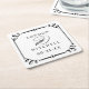 Elegant Black Scroll Frame Custom Wedding Monogram Square Paper Coaster