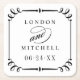 Elegant custom wedding coasters feature a decorative scroll frame with a stylish monogram design that can be personalised with the bride and groom names and wedding date.