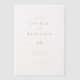 This elegant wedding invitation features a minimalist design with a clean white background, emphasising simplicity and sophistication. The layout is structured with centred text in a hierarchical manner, using bold serif fonts for the names and date, while a cursive script adds a touch of elegance to the word "and." The black text on a white palette creates a classic look, perfect for conveying formality and refinement. Ideal for couples seeking an understated yet sophisticated aesthetic, this invitation sets the tone for a memorable celebration.