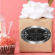 Matching a luminous shimmery silver frame and cute hearts graphic on a black background.