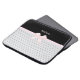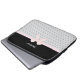 The sleeve is made of nice feeling material and seems very durable. I'm not sure how easy it'll be to clean, but the construction seems sound and the fabric is quick thick. I also like the double zipper. The printing is lovely and appears durable. The white on black contrast is nice, and the design very elegant.