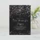 Invite your guests to your New Years Eve holiday party with this elegant black and silver glitter sparkle invitation with fancy glitter typography.