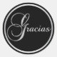 Elegant Black Silver GRACIAS Envelope Favour Classic Round Sticker