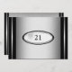 Silver & Black 21ST Birthday Party, Suitable for a Man ow Woman. All Events, Celebrations, Announcements Anniversaries and Birthday Party Invitations. Suitable for all age birthdays and events. Rsvp is available upon request in similar style. Beautiful Stylish Silver Grey Speckled Glitter on Black with Light silver Metal Stripe Trims and Featuring Black and Silver Metal Oval Plates. Change style of text with customise.