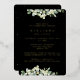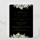 A black bridal/wedding shower invitation, featuring an edging of hand painted snowberries and stems of eucalyptus. The text and scattered dots on the front of the card are foil pressed. Please view this Collection in my store for alternative floral arrangements, different colours and for coordinating items.