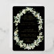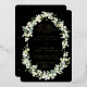 A black reception only wedding invitation, featuring hand painted snowberries and stems of eucalyptus arranged into a beautiful botanical frame. The text and scattered dots on the front of the card are foil pressed. All text is fully editable. Please view this Collection in my store for invitations with alternative wording options, different colours and for coordinating items.