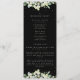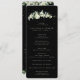 A black wedding program/order of ceremony, complete with a listing for a small wedding party and a thank you message. Featuring arrangements of hand painted snowberries and eucalyptus. All text is fully editable. Please view this Collection in my store for programs with alternative wording/layouts and in different sizes/colours/shapes. Coordinating items also available.
