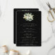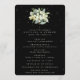 A black wedding program/order of ceremony, with a listing for a small wedding party and a thank you message on the back. Featuring an elegant bouquet/posy of hand painted snowberries and eucalyptus and a scattering of dots. All text is fully editable. Please view this Collection in my store for programs with alternative wording/layouts and in different sizes/colours/shapes. Coordinating items also available.