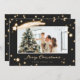 Custom black and sparkly star photo Christmas card featuring a photo frame adorned with a falling star and glowing stars on a black background. Easily personalise this magical photo Christmas card with your photo, the family name and text. The background can be changed to any colour using the customisation tool.