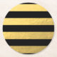 Elegant Black Stripes Gold Foil Printed Round Paper Coaster