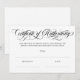 Elegant certificate of authenticity in black and white with a swirly calligraphy script.