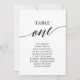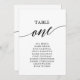 These elegant black table number 1 seating chart cards are perfect for a simple wedding. The neutral design features a minimalist card decorated with romantic and whimsical typography. The card prints on the front and back (double-sided).