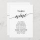 These elegant black table number 9 seating chart cards are perfect for a simple wedding. The neutral design features a minimalist card decorated with romantic and whimsical typography. The card prints on the front and back (double-sided).