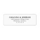 This return address label features a clean, minimalist design with a focus on elegant typography. The layout is vertically centered, creating a balanced and professional appearance, perfect for formal correspondence. The color palette consists of crisp black text on a bright white background, enhancing readability and sophistication. Customizable fields allow for personalization while maintaining a classic and timeless look, ideal for weddings or special events.