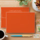 This wedding envelope features a minimalist design with a bold orange background and centered white text, creating a striking contrast. The layout is clean and modern, utilizing ample negative space to highlight the elegant serif typography. Perfect for formal invitations, this design conveys sophistication and simplicity, making it ideal for couples seeking a chic and uncluttered look for their special day.