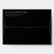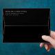 This wedding envelope features a minimalist design with a sleek black background and crisp white text, creating an elegant contrast. The layout is simple and clean, utilising ample negative space to highlight the centred typography in a sophisticated serif font. Perfect for formal events, this design conveys a mood of simplicity and professionalism, making it ideal for weddings or other significant announcements. Customisable fields allow personalisation, ensuring each envelope reflects the unique style of the occasion.